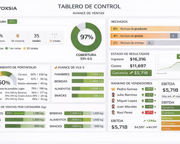 Conectados con Ges Com web Voxsia recomienda distintas conexiones que brindan graficas para la toma de decisiones mediante POWER BI